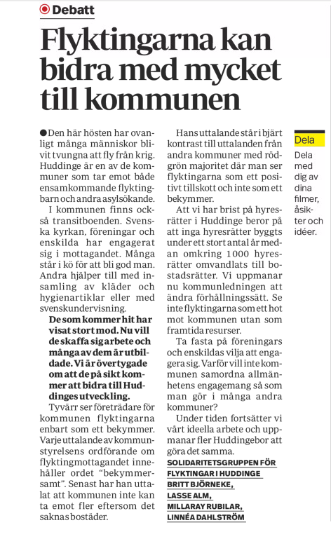 När jag själv har varit ute i våra olika kommundelar har jag också slagits av att det finns behov av att lyfta olika frågor på olika platser. Även sättet vi kommunicerar vår politik kan behöva vara olika beroende på var vi befinner oss. Det är många frågor som styrelsen kommer att arbeta med under året. Självklart även i diskussion med medlemmarna och med kommungruppen. Det är ju redan nu dags att börja planera det strategiska arbetet inför valet 2018!